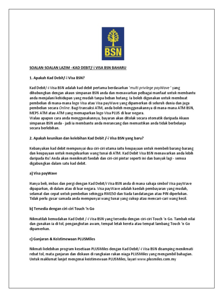 Kad Debit Bsn - Anda tidak perlu risau tentang hutang pada hujung bulan kerana duit akan ditolak terus dari akaun anda, cumanya pastikan anda mempunyai baki.
